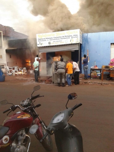 Boa parte da mercadoria da Relojoaria Hora Certa também foi consumida pelo fogo. O dono ainda não sabe precisar o prejuízo.