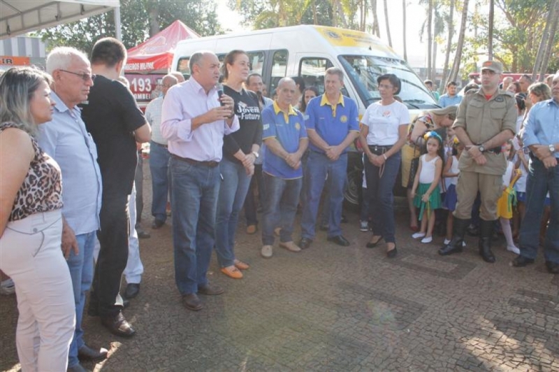 A entrega aconteceu na Praça dos Três Poderes, durante festividades alusivas à Semana da Pátria. A diretora da unidade de ensino beneficiada, professora Ionei Aparecida, agradeceu à prefeitura pelo veículo, lembrando que a escola já havia sido beneficiada com a construção de uma piscina. A secretária de promoção e assistência social e I dama, Fátima Menezes de Resende destacou a importância do trabalho realizado através do Projeto Social Jovem do Futuro. “Estamos realizando uma política social de resultados”, disse. O prefeito Odair Resende agradeceu a todos os envolvidos com o Projeto que, além de beneficiar crianças e adolescentes, estende benefícios também a entidades quirinopolinas. O dinheiro arrecadado com as vendas dos produtos na Casa Jovem do Futuro é aplicado na aquisição ou construção de benfeitorias para entidades locais.