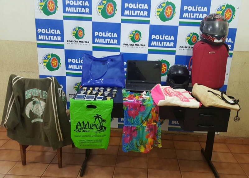 No final da tarde de ontem (31), a equipe do GPT, composta pelos Sargentos F. Silva e De Freitas e pelo Cabo Leandro, se deslocou até a empresa Visão Serigrafia, onde na madrugada havia ocorrido um furto. Através das imagens do circuito de câmeras do estabelecimento, os policiais identificaram um dos autores. O elemento de 18 anos de idade foi localizado em uma casa da Rua Júlio Borges, Bairro Municipal. No local foram encontradas três bolsas femininas e uma saída de banho, produtos furtados na Visão Serigrafia. Na casa estava também um homem de 32 anos de idade. Os dois confessaram a autoria do furto. Eles contaram que usaram duas barras de ferro e uma motocicleta Honda CBX 250 Twister, vermelha. O veículo teria sido emprestado por um terceiro elemento de 21 anos, o qual foi localizado em sua casa, à Rua 5 do Bairro Alphaville, onde o veículo foi apreendido. Ao serem indagados sobre os notebooks furtados, os suspeitos disseram que haviam vendido os aparelhos para outro rapaz de 23 anos de idade, velho conhecido da polícia, mas que não fora localizado. Na casa do pai dele, à Rua Ramiro Antônio de Assis, foram apreendidos dois celulares.