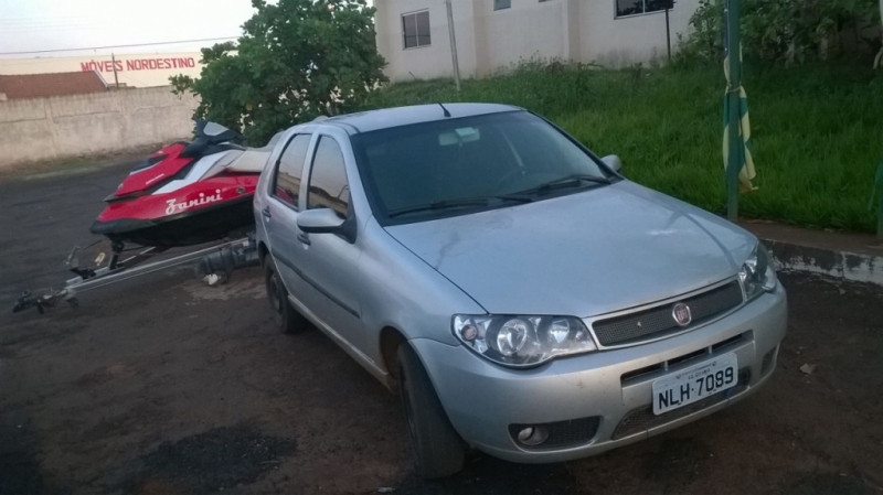 Em outra ocorrência policial, registrada na madrugada de hoje (17), dando continuidade ao BO de roubo, a Polícia Militar (PM) soube através do agente da Polícia Civil Sebastião, que os autores empreenderam fuga em um Fiat Palio, cor prata, placa NLH-7089), fato repassado pelo coponista da PM, sargento Couto, para as unidades circunvizinhas. O veículo foi interceptado próximo ao trevo da cidade de Paranaiguara. No carro estavam o condutor Humberto Tiago, 22 anos e os passageiros Allan Kardec, 41 anos, e Fábio Pereira, 25 anos. No carro, a polícia recuperou o motor de polpa e 3 celulares.