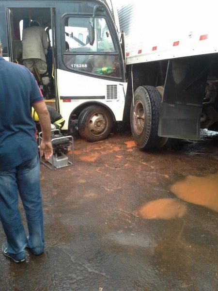 Uma vítima ficou presa às ferragens, com as pernas entre o volante e o banco do ônibus. Os Bombeiros utilizaram um conjunto desencarcerador e a ferramenta Hi-Lift Xtreme Jack, adquirida recentemente, para resgatar a vítima, que foi levada em seguida para o Hospital Municipal.