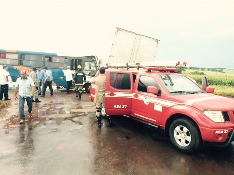 No começo da tarde desta segunda-feira (9), os Bombeiros de Quirinópolis foram chamados até as proximidades do ?Trevo do Cristo?, onde havia ocorrido acidente envolvendo um ônibus e um caminhão.