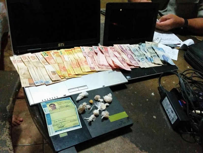 No imóvel foram encontrados R$ 612,00 em notas diversas e algumas porções de crack. No meio do entulho, do lado de fora da casa, foram encontradas algumas pedras de crack. Na residência foram apreendidos ainda um notebook, um carregador de notebook e um controle remoto. Um veículo Saveiro, vermelha, placas de Aparecida de Goiânia, que estava estacionado no local também foi apreendido. O carro estava com o licenciamento vencido. 3 elementos que estavam na casa foram levados para delegacia. Dois deles são presos do regime de albergue domiciliar. Um menor fugiu ao avistar a polícia. A droga pertencia a ele, segundo denunciou os que foram detidos.