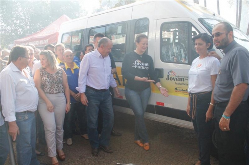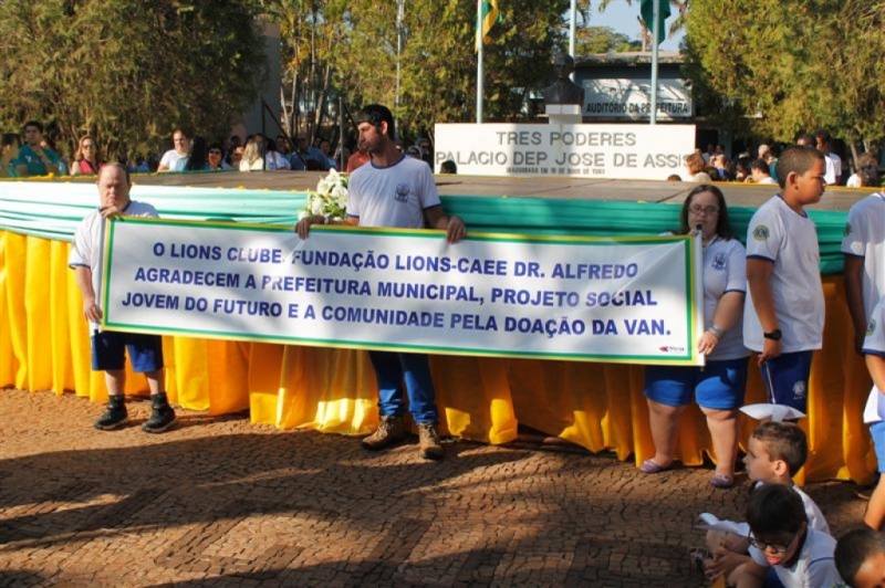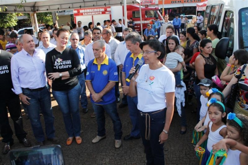 A entrega aconteceu na Praça dos Três Poderes, durante festividades alusivas à Semana da Pátria. A diretora da unidade de ensino beneficiada, professora Ionei Aparecida, agradeceu à prefeitura pelo veículo, lembrando que a escola já havia sido beneficiada com a construção de uma piscina. A secretária de promoção e assistência social e I dama, Fátima Menezes de Resende destacou a importância do trabalho realizado através do Projeto Social Jovem do Futuro. “Estamos realizando uma política social de resultados”, disse. O prefeito Odair Resende agradeceu a todos os envolvidos com o Projeto que, além de beneficiar crianças e adolescentes, estende benefícios também a entidades quirinopolinas. O dinheiro arrecadado com as vendas dos produtos na Casa Jovem do Futuro é aplicado na aquisição ou construção de benfeitorias para entidades locais.