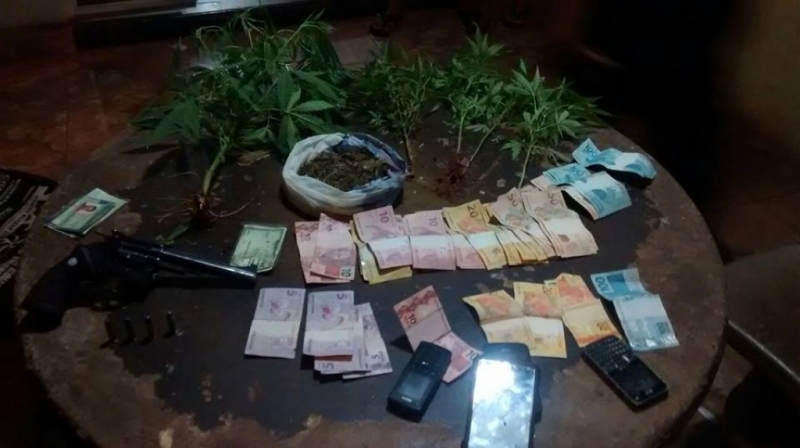 As imagens contidas no celular e o nervosismo dos abordados levaram a polícia até a casa de um dos suspeitos, na Avenida João Fratari. Lá foi encontrado um revólver Taurus calibre 38 com 4 munições no tambor. Em seguida, os policiais foram até uma quitinete da Avenida Garibaldi Teixeira, onde moram outros 2 suspeitos. Em um saco plástico, os PMs encontraram aproximadamente 110 gramas de maconha e R$ 880,00 em dinheiro.