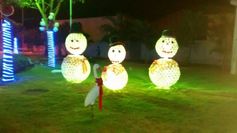 Este ano, o trabalho conta com parceria da Superintendência do Meio Ambiente. O objetivo é criar uma opção de espaço a mais para que as famílias se confraternizem. Os enfeites são feitos com lixo reciclável, pets e pneus, lixo que vira luxo. A decoração da Praça ficará exposta para visitação até as últimas comemorações natalinas, que encerram no final de dezembro.