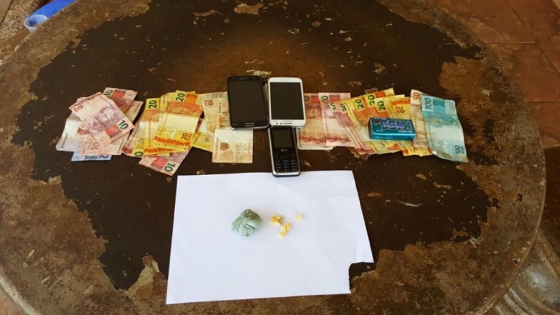 Quando a polícia chegou, os suspeitos estavam sentados em uma mesa, juntamente com um casal, sendo que o homem fazia uso de entorpecente. Ao verificar o celular de um dos suspeitos, a polícia descobriu que ele usa o aplicativo WatsApp para a venda de droga. Os usuários surpreendidos no local afirmaram que tem o costume de adquirir droga dos suspeitos. Ciente do fato, a polícia foi até a casa de um dos suspeitos, onde encontrou uma porção de maconha, 7 pedras de crack e R$ 332,00 em dinheiro.