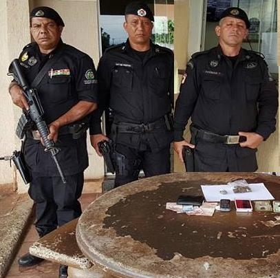 Através das imagens, a polícia reconheceu um dos autores. Em patrulhamento pela cidade, os PMs depararam com ele. O suspeito conduzia uma bicicleta, na Av. Brasil próximo ao CREQ. Abordado, ele assumiu a autoria do roubo, informando o nome do outro bandido. A dupla usou uma moto Dafra, placa de Goiânia, em nome de uma moradora da Rua Tiradentes, irmã de um dos suspeitos. Quando percebeu a presença da polícia, o elemento fugiu, levando os produtos roubados e a arma empregada no crime. No local, os policiais receberam informações de que a arma estava guardada em uma casa da Avenida Frei João Batista. Lá, os policiais encontraram um menor com uma porção de maconha. No quarto de outro menor, uma lata com 18 gramas de maconha. Foram apreendidos também 2 celulares.