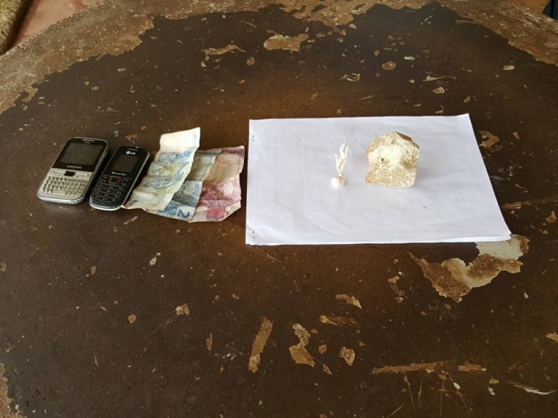 Às 15:28h, a Polícia registrou tráfico na Rua José Melgaço da Fonseca. Em patrulhamento pelo local, os policiais avistaram um elemento suspeito. Ele estava nos fundos de seu quintal e acabou abordado, uma vez que já tinha várias passagens por tráfico e outros crimes. Quando os policiais entravam na casa, o filho do suspeito começou a gritar “pai, é o GPT”. Nisso, o suspeito jogou um pacote no quintal do vizinho. Eram duas pedras de crack, uma grande e outra menor. Durante busca domiciliar, o celular do homem não parava de tocar. O aparelho foi atendido. Eram usuários querendo comprar droga. Pai e filho foram levados para delegacia, junto com 98 gramas de crack, 2 celulares, R$ 7,00 em dinheiro e um veículo Jog, o qual, segundo a polícia, era usado na comercialização de entorpecente.