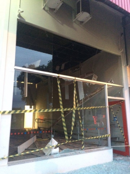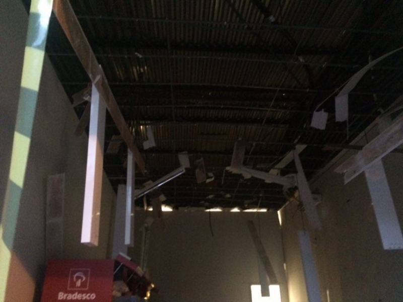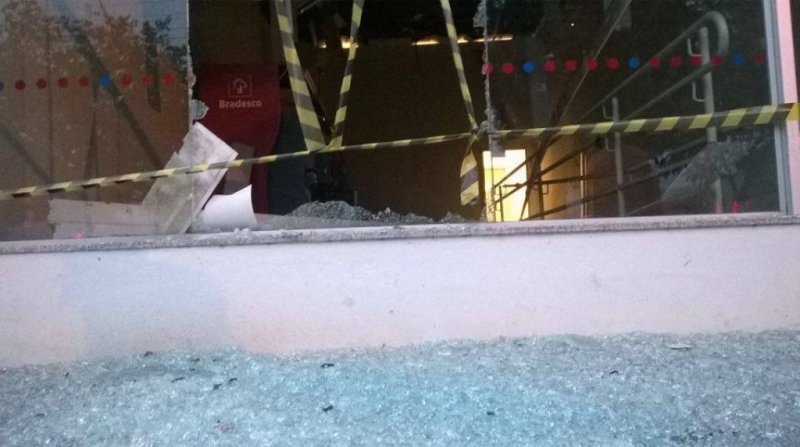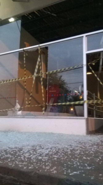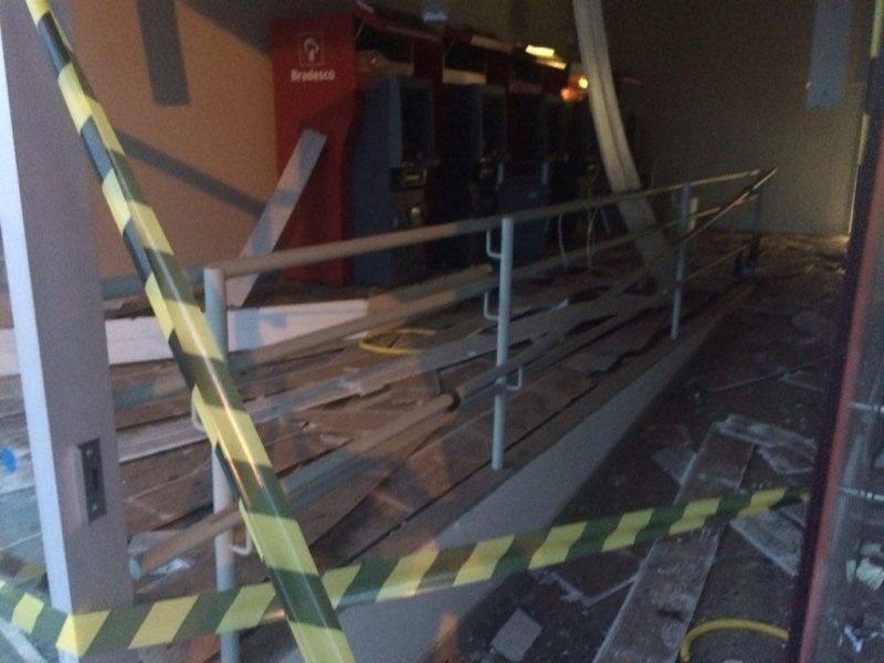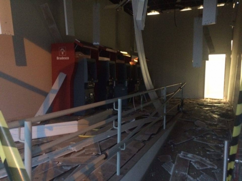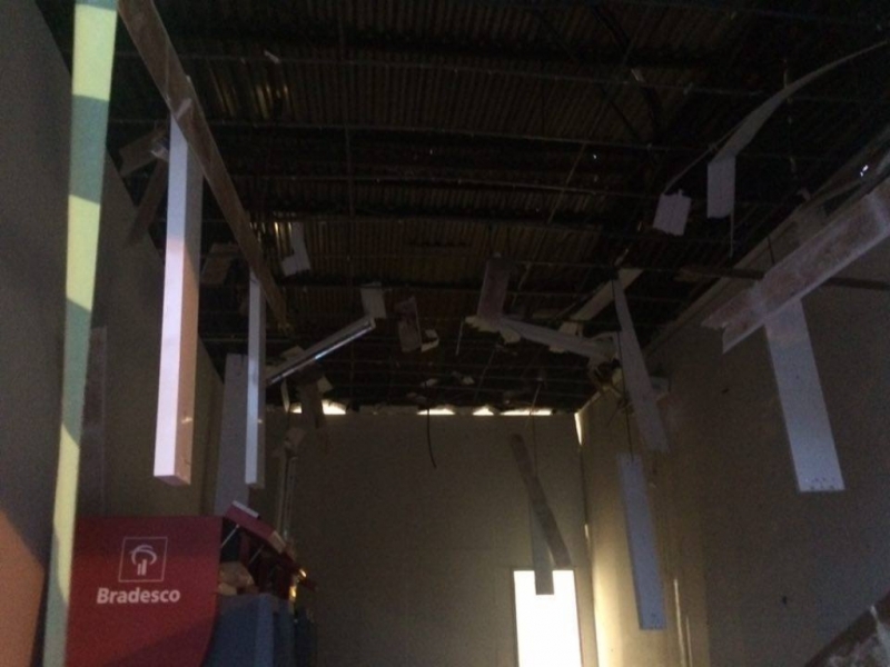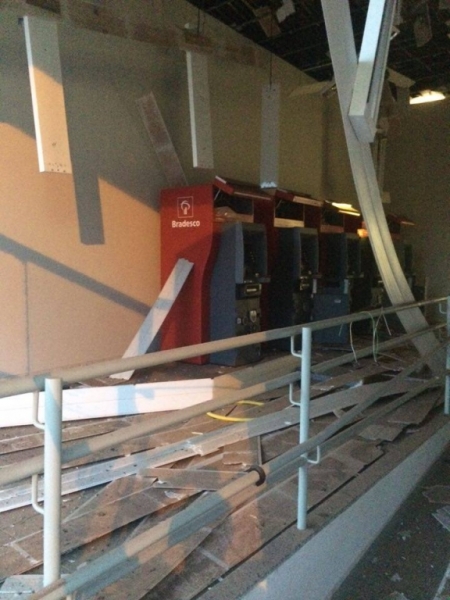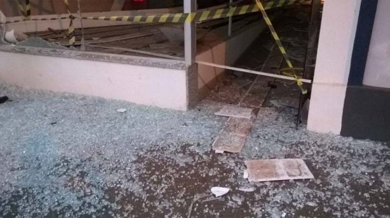 A explosão destruiu a fachada e o forro do prédio. O impacto foi tão forte que derrubou latas de tinta que estavam nas prateleiras de uma loja localizada ao lado de onde funcionam os caixas eletrônicos.