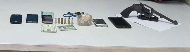 A Polícia já havia recebido várias denúncias de que a dupla andava armada. Na casa de um deles foram encontrados 4 cartuchos calibre 38 deflagrados, além de um pedaço de maconha, escondido em uma casa de despejo, nos fundos do terreno. O outro tentou despistar os policiais, informando outro endereço. Porém, os PMs conseguiram localizar o endereço correto. No local foi encontrado um revólver calibre 38 com duas munições intactas e um celular aparentemente novo.