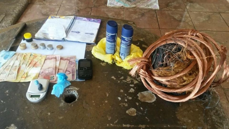 Diante da situação de flagrante, a equipe deu voz de prisão aos envolvidos, e, ao realizar a varredura no lote e interior da residência, encontrou outras porções de droga, balança de precisão, dinheiro em espécie, um caderno contendo anotações relativas ao tráfico, como controle de entrada e saída das vendas de entorpecentes, além de vários números de telefones dos "clientes", e outros objetos, já envolvidos nas negociações.