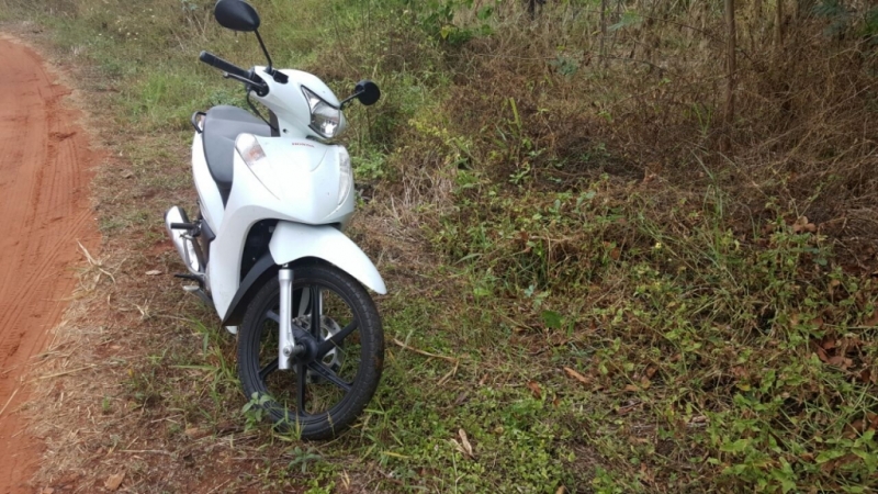 A equipe do GPT composta pelos os Sgts. Ademar, Ribeiro e Cb. Leandro, apreenderam no início da tarde de hoje (23), uma moto que havia sido furtada na tarde de sábado (21). Os Policiais foram informados, através do Sgt. De Freitas, que havia recebido uma ligação, informando sobre uma moto abandonada próximo de uma mata na entrada da chácara varejão.