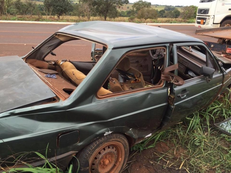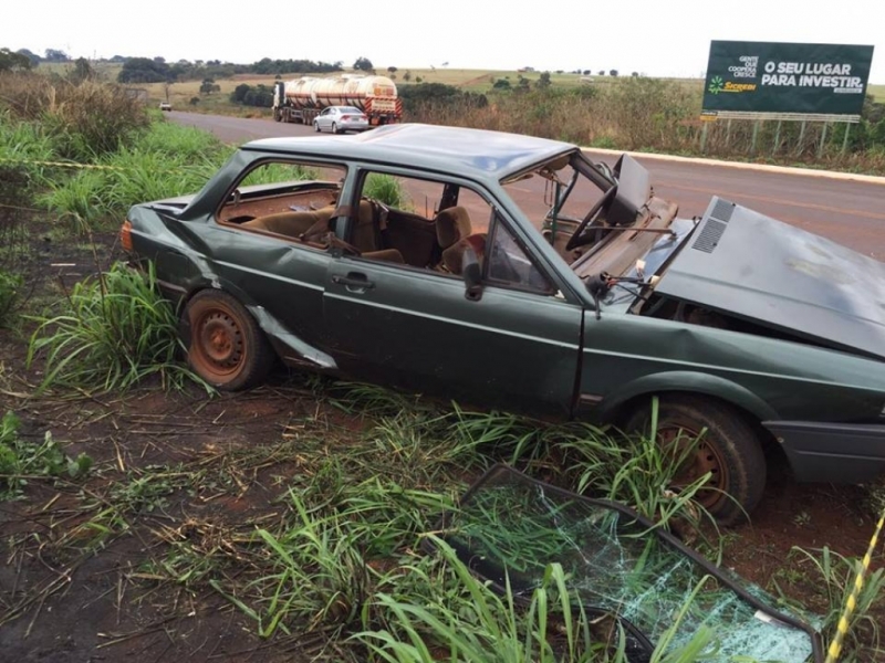 Um grave acidente matou duas pessoas no início da tarde desta quarta-feira (8). Foi no trevo da GO-164 com a Avenida Brasil. As duas vítimas viajavam em um Voyage, placas de Paranaiguara-GO. Anicássio Conceição de Souza, 63 anos, e Sônia Maria de Oliveira Souza, de 48 anos não resistiram aos ferimentos e morreram no local.