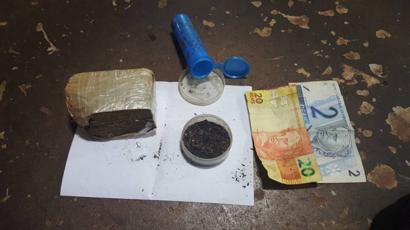 Ao perceber a presença da viatura, o condutor de 20 anos fugiu, levando a namorada de 15 anos, na garupa do veículo. Ele foi alcançado e abordado em frente a casa dele. No quarto do suspeito, a polícia encontrou um frasco de comprimidos com 5 porções de maconha. No quintal, escondido em um cano de PVC, que estava soterrado, foram encontrados 203 gramas de maconha e 2 capuzes. Foram apreendidos também 3 celulares e R$ 22,00 em dinheiro. O suspeito e a namorada foram levados para delegacia junto com os objetos.