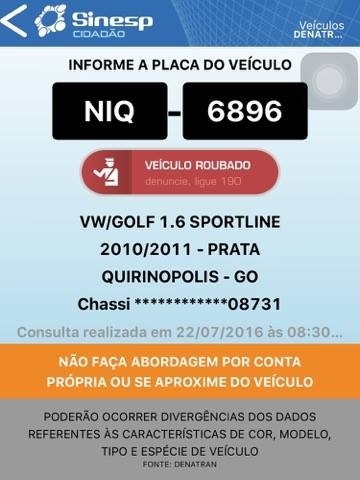 O veículo furtado é um Golf, cor prata, ano 2010/2011,placa NIQ-6896.