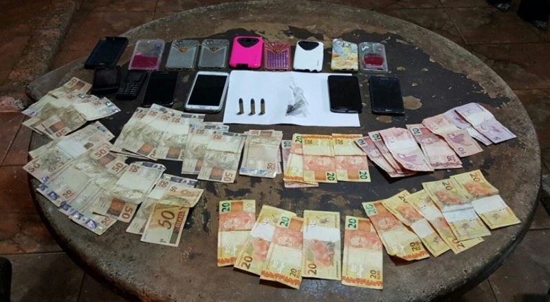 Em seguida, a Polícia foi até a Rua 10 do Jardim Vitória, onde reside o suspeito. Lá, os PMs encontraram R$ 2.430,00 em espécie, 3 munições calibre 38, 5 celulares e 10 capas para celulares. Depois, os policiais se deslocaram também até uma casa da Rua Ramiro de Assis, onde o autor também estaria residindo. Denúncia anônima dava conta que o local funcionaria como uma boca de fumo. Porém, apenas um celular suspeito foi encontrado. O cidadão foi levado para delegacia, junto com os objetos.