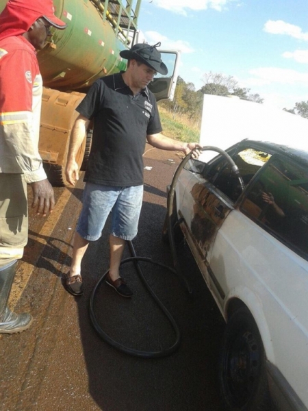 O Cabo Juares, da Polícia Militar (PM) trafegava pela GO-164, sentido Lagoa do Bauzinho/ Quirinópolis, por volta das 14:20h desta quinta-feira (28), quando nas proximidades do Córrego Lageado, deparou com um veículo Gol, placa GPQ-8319 de Gouvelândia-Go, estacionado às margens do rodovia. Havia chamas na porta do motorista. De imediato, o PM pegou o extintor de seu veículo, com a finalidade de apagar o fogo. Depois, utilizou mais três extintores de outros carros que passavam pelo local. Com não foi possível debelar as chamas, o policial solicitou para que um cidadão fosse até o local onde havia avistado um caminhão pipa de uma usina. O caminhão se deslocou até o local e o fogo foi apagado.