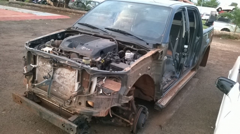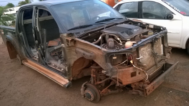 Por volta das 17:30h desta segunda-feira (5), a Polícia Militar (M) foi chamada à Fazenda Douradinho, na região do povoado do Tocozinho, onde Maria do Carmo Epifânio Freitas, 63 anos, contou que, em uma mata próximo à casa dela, havia uma camionete parcialmente desmontada. Os policiais verificaram que se tratava de uma camionete Hilux, cor preta, ano 2013, placa OOD 4360 de Goiânia-GO, a qual havia sido roubada em Santa Helena de Goiás, no último dia 30 de agosto. A camionete estava toda “depenada”. Os ladrões só não levaram o motor.
