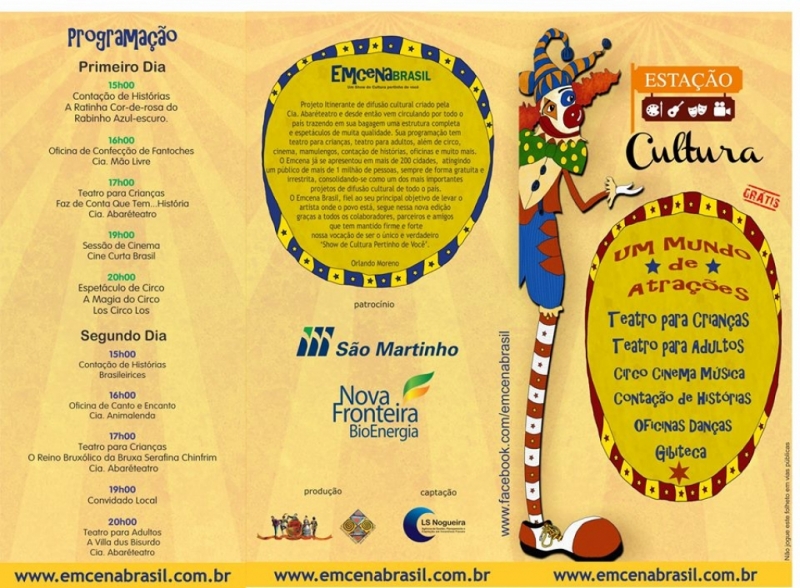 A iniciativa é promovida pelo Grupo São Martinho em parceria com o projeto Emcena Brasil e apoio da prefeitura de Quirinópolis. O Emcena Brasil já tem passagem por cerca de 350 cidades brasileiras, atingindo um público de mais de um milhão e meio de pessoas, levando cultura e entretenimento gratuito para toda a família.