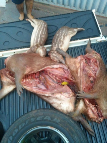 De acordo com ocorrência registrada pela 12ª CIPM, uma viatura patrulhava pela cidade, quando deparou com um veículo Escort com o porta-malas aberto. Os policiais resolveram retornar, a fim de averiguar a situação. Nisso, os dois suspeitos adentraram para o interior de uma casa localizada à Alameda Paranaíba, Bairro Pecuária. Os policiais verificaram que havia uma espingarda no veículo e outra na porta da casa. No quintal foram encontrados quatro animais silvestres, já mortos: duas pacas e duas capivaras. Os envolvidos foram levados para delegacia, junto com as duas armas e 19 munições, sendo 17 intactas.