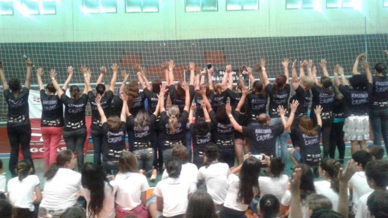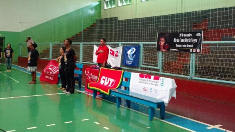 O SINTEGO Quirinópolis promoveu na manhã desta terça-feira o evento “Abraço Negro”. Alunos e professores da rede municipal e estadual se reuniram no ginásio de esportes do município para uma manhã especial e diferente. O ato faz parte da campanha de conscientização contra a discriminação racial promovida pelo sindicato em alusão ás comemorações do dia da “Consciência Negra”, comemorado no ultimo dia 20 de novembro. Eliedes Francisca da Silveira, presidente da Regional do Sintego de Quirinópolis disse que a realização do evento é uma forma de mostrar para toda comunidade que o sindicato está voltado não apenas para a luta dos direitos dos trabalhadores da educação, mas também defender as causas que representam toda comunidade.