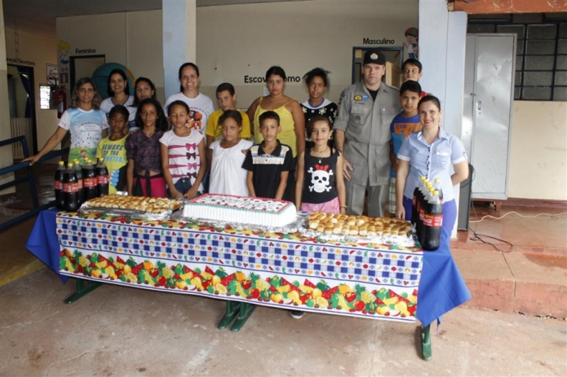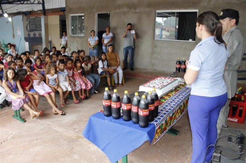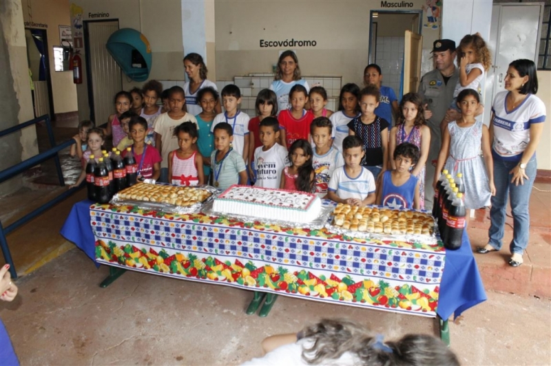Além de bolo, na confraternização foi servido refrigerante e salgados. A alegria ficou estampada no rosto dos quase 100 alunos do Colégio, crianças que cursam do 1º ao 5º ano do ensino fundamental. A pequena Maria Clara, de 9 anos de idade, agradeceu ao cabo Juares pela festa e disse que é boa sua expectativa para cursar o 5º ano, em 2017. O cabo Juares se emocionou e só conseguiu pronunciar poucas palavras, para fazer o compromisso de continuar realizando o evento à cada final de ano.