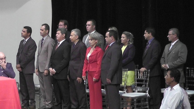 Os vereadores foram os primeiros a serem empossados. Após o juramento, Veroneida Rodrigues de Assis falou em nome da oposição. Em seguida, foi a vez do pronunciamento de Márcio Xavier, que falou em nome dos parlamentares da bancada de situação. O ato seguinte foi a posse do prefeito Gilmar Alves e de seu vice Zezé. Encerrada a cerimônia de posse, também no Teatro Sodino Vieira de Carvalho, a Câmara Municipal elegeu sua nova Mesa Diretora. Apenas uma chapa denominada “Um novo tempo, uma nova Câmara” foi apresentada, sendo eleita por unanimidade.