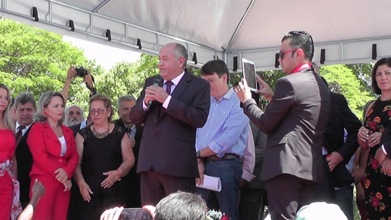 De acordo com ele, a construção de um prédio com 15 gabinetes para os vereadores é uma de suas metas para os próximos dois anos. Encerradas as solenidades no Teatro, houve a transmissão de cargo, em frente a sede da prefeitura, onde sob o sol forte, milhares de pessoas assistiram o ex-prefeito Odair Resende (PSDB) entregar as chaves ao novo prefeito Gilmar Alves (PMDB). Em sua fala, Odair garantiu estar deixando mais de R$ 6 milhões em caixa e a prefeitura devidamente em dias.