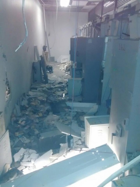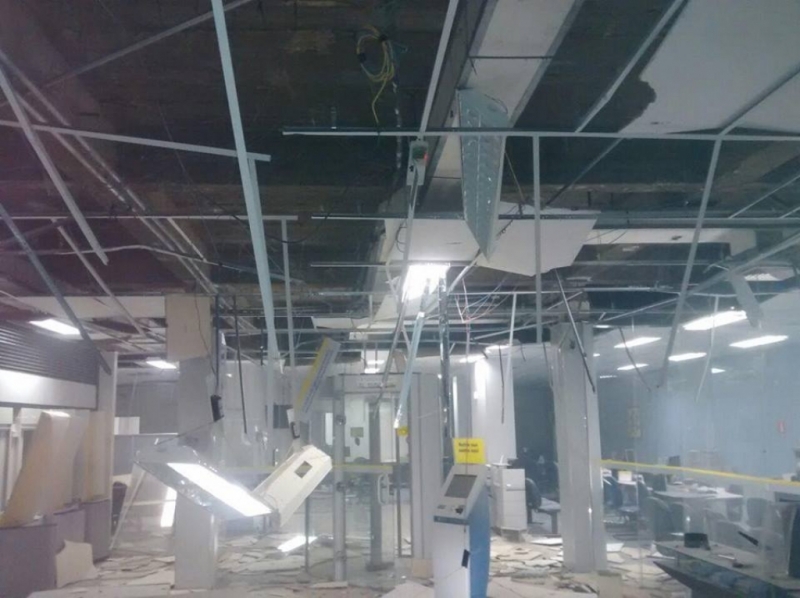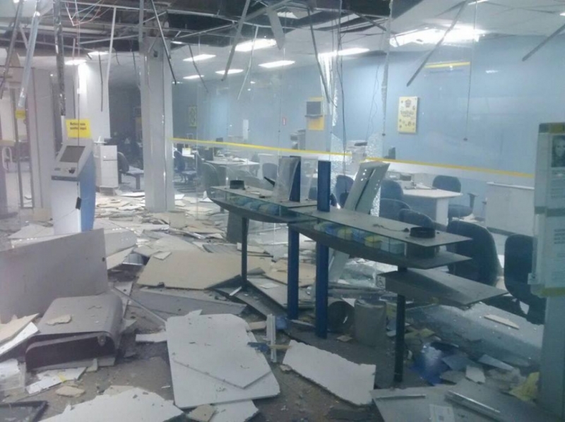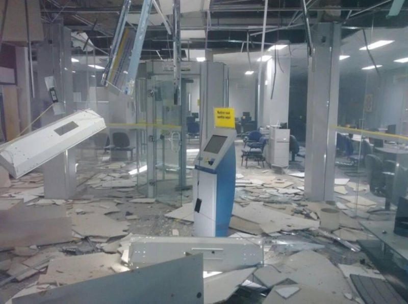 Por volta das 3h20 da madrugada deste sábado (4), a Polícia Militar (PM) recebeu informação sobre a explosão de caixas eletrônicos na agência do Banco do Brasil. As viaturas foram deixadas há alguns metros do banco, os PMs chegaram a pé. Havia muita fumaça e poeira no interior da agência, que estava com a vidraça quebrada.