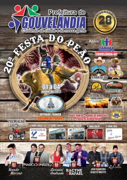 No próximo dia 1º de junho, o município de Gouvelândia completará 28 anos de emancipação político-administrativa. A data será lembrada com a 20ª Festa do Peão, no período de 1º a 4 de junho.
