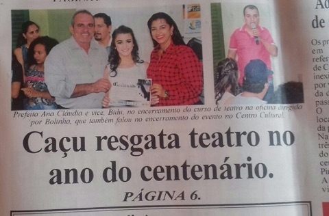 Em evento promovido pela Secretaria de Educação e Cultura e a Secretaria de Assistência Social, Bolinha recebeu elogios e homenagem de artistas e da prefeita Ana Cláudia que fez o convite para que ele produza e dirija um filme em homenagem aos cem anos da cidade. Segundo a esposa do vice prefeito ,Dalvina, Bolinha fez a diferença na atual gestão, em se tratando de cultura.