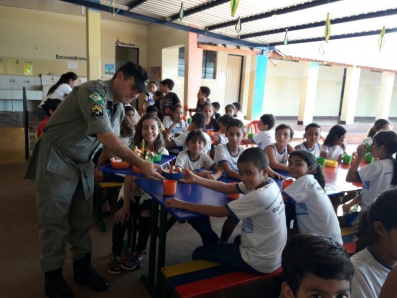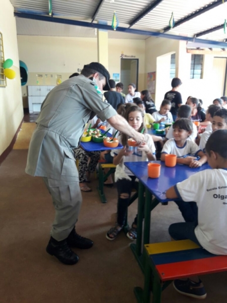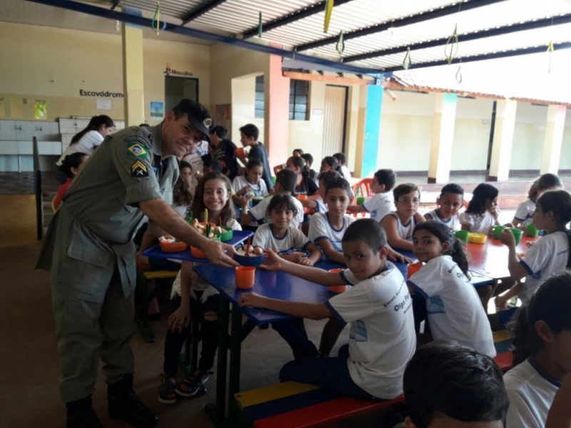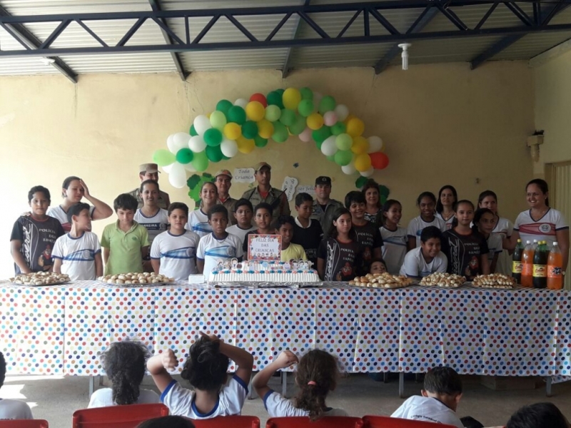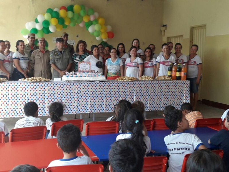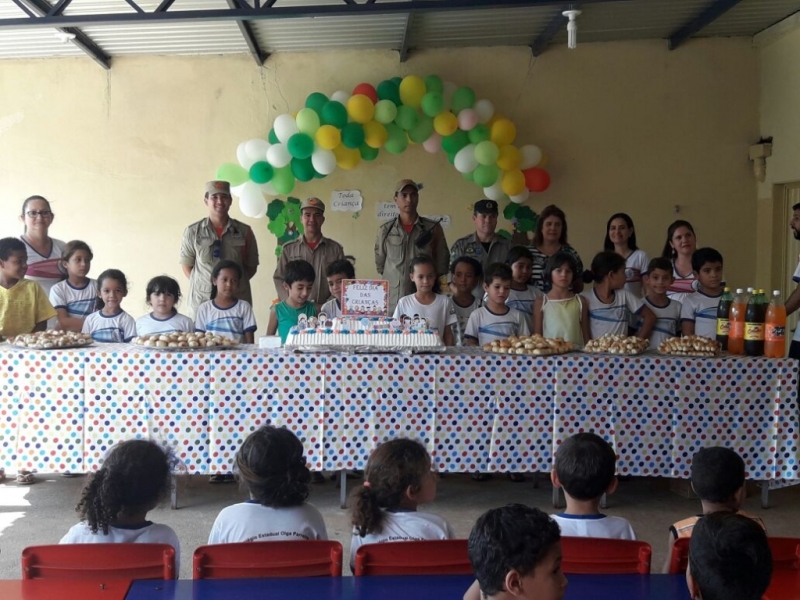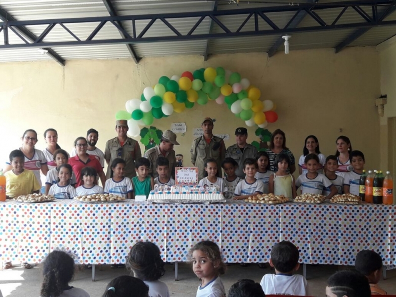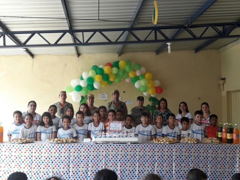 Pelo segundo ano consecutivo, o Cabo Juares Santos, da Polícia Militar (PM) de Quirinópolis, realizou festa para os cerca de 100 alunos da Escola Estadual de Tempo Integral Olga Parreira.
