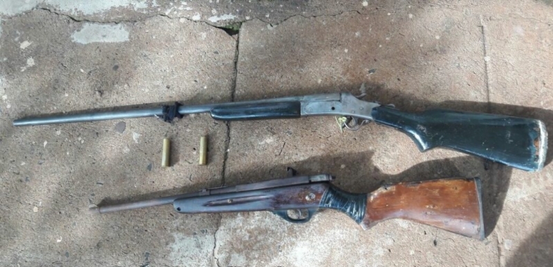 Em seguida, a polícia foi até a casa do adolescente, onde com autorização de sua mãe foi realizada busca domiciliar. Debaixo de uma cama foram encontradas e apreendidas duas armas de fogo, sendo uma espingarda 28 e um rifle 22, além de duas munições. As armas pertencem ao padrasto do adolescente. O infrator foi encaminhado do Hospital Municipal de Quirinópolis para o Hospital de Urgências de Santa Helena. Ainda no Hospital Municipal, a polícia localizou um rapaz de 20 anos de idade, o qual havia emprestado a motocicleta para o menor de idade. Na casa dele foi encontrado um cigarro artesanal, uma porção de maconha e dois celulares. Os envolvidos foram levados para delegacia.