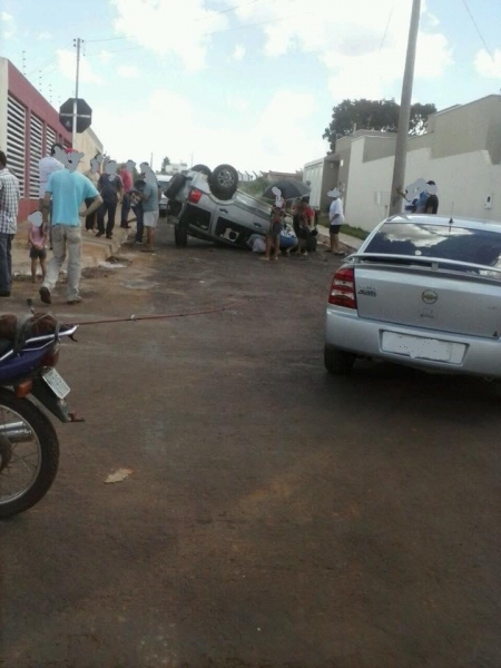 Por volta das 15h, uma Ecosport tombou, depois de chocar contra um Astra, no cruzamento da Rua Eurípedes Ribeiro e Rua 3 do Bairro Morada do Sol. 3 pessoas ficaram feridas, inclusive o motorista da Ecosport. Ele ficou preso nas ferragens. As vítimas foram socorridas pelos Bombeiros.